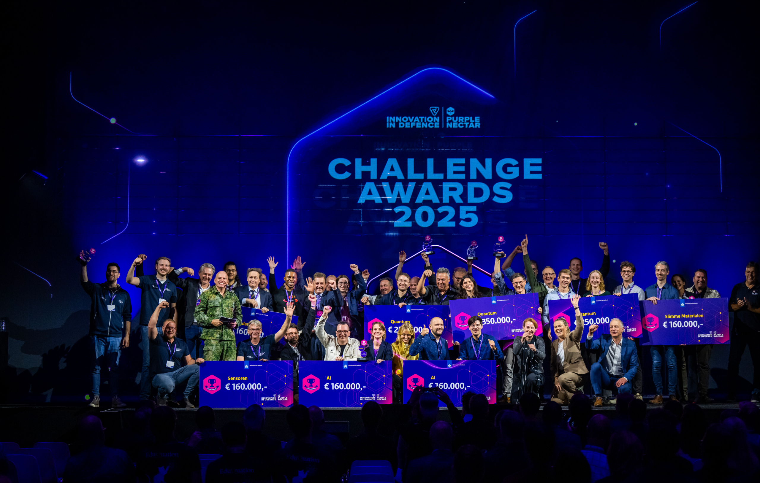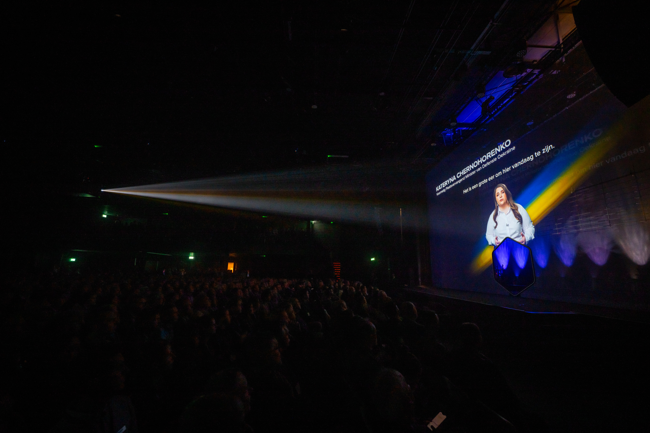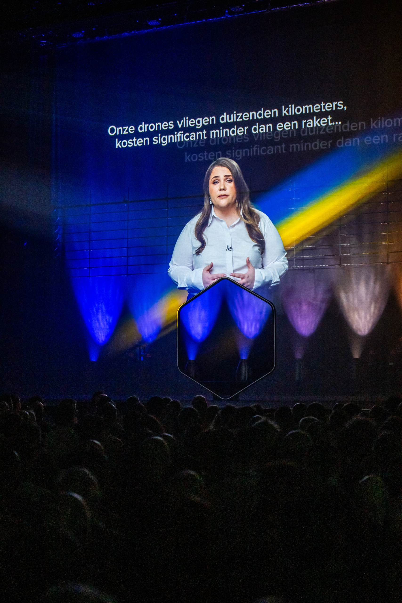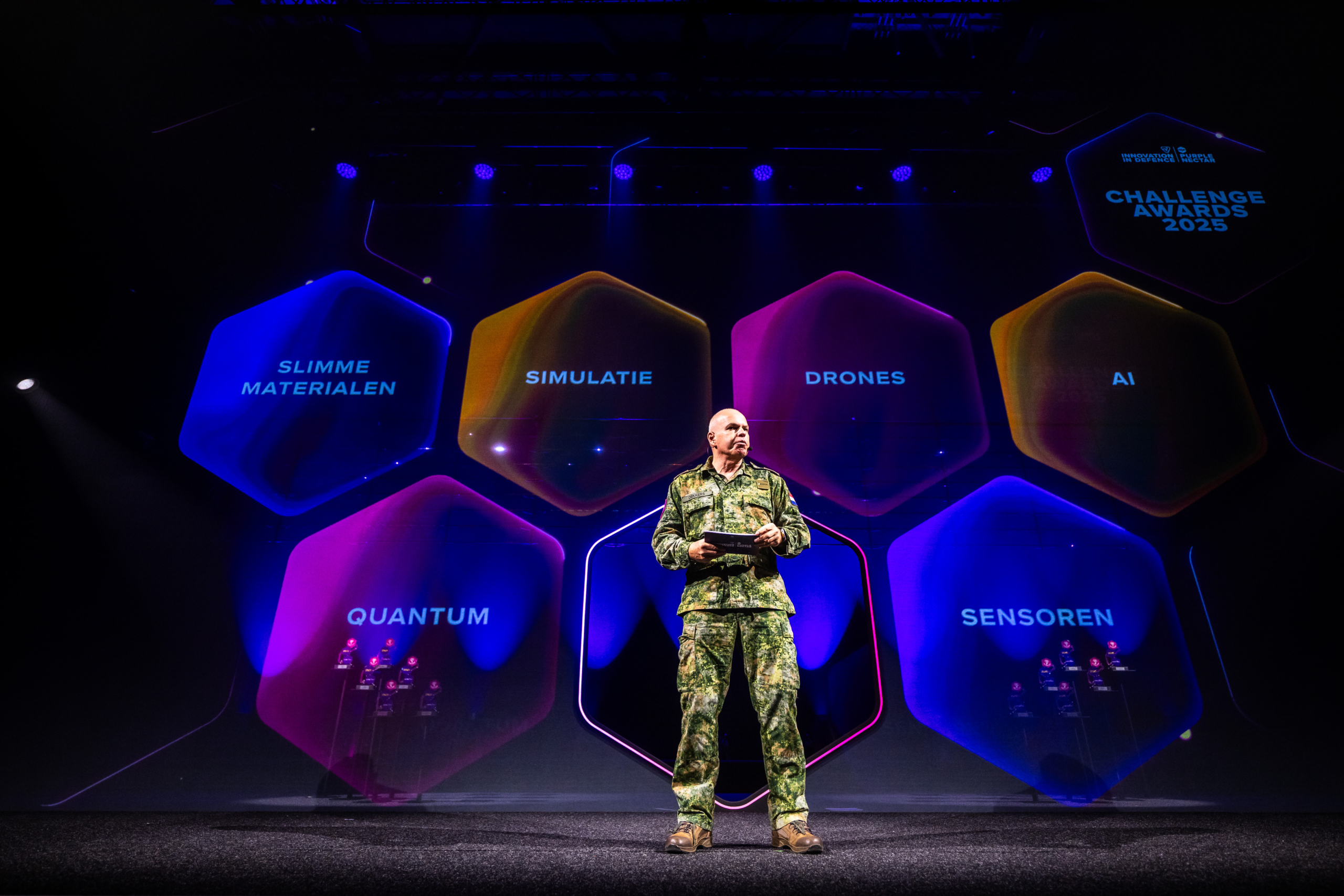 For the Defence innovation event, we created an opening show that felt like a briefing — the start of a mission. An operational introduction that immediately pulled visitors into the tension between threat and innovation. On a gigantic mesh screen, a holographic projection world unfolded: cinematic visuals, light effects, and audio that we transformed into a full field experience. The audience was no longer just spectators, but a team in preparation. We took them into the field, to the front lines — where innovation isn’t an idea, but a chance of survival. Where technology is integrated under pressure, in action, in real time. The briefing was reinforced by contributions from three top-level speakers: the Chief of Defence, the Commander of COMMIT (Materiel & IT Command), and the former Deputy Minister of Defence of Ukraine, who conveyed with razor-sharp clarity how innovation — right now, in this very moment — makes the difference between life and death. From that charged energy, we also conceived, designed, and developed the Challenge Awards — from script and sleek graphic design to custom music and the decisive moment when innovators received their recognition.